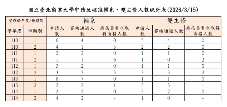 各學期核准輔系、雙主修人數